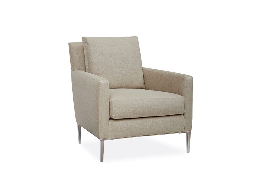 Alternate Views: Chair 1299 Item Number: U1-1299-01 Custom upholstered chair from Lee Industries. Polished metal legs. Separate seat and back cushion. Available in fabric or leather. Measurements App. 31"w 34"d 33"h SH 17 AH 24