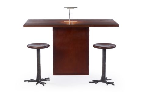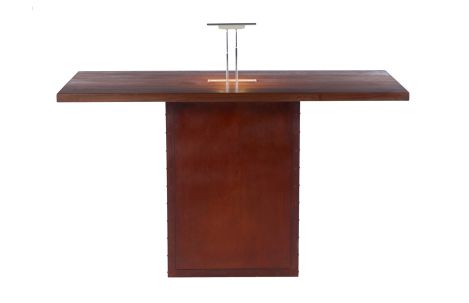 Alternate Views: Task Desk Item Number: C112-6030-36 This Task desk with pop up LED light is shown in walnut with Danish oil finish. Metal finish shown in rust. Measurements App. 60"w 30"d 36"h
