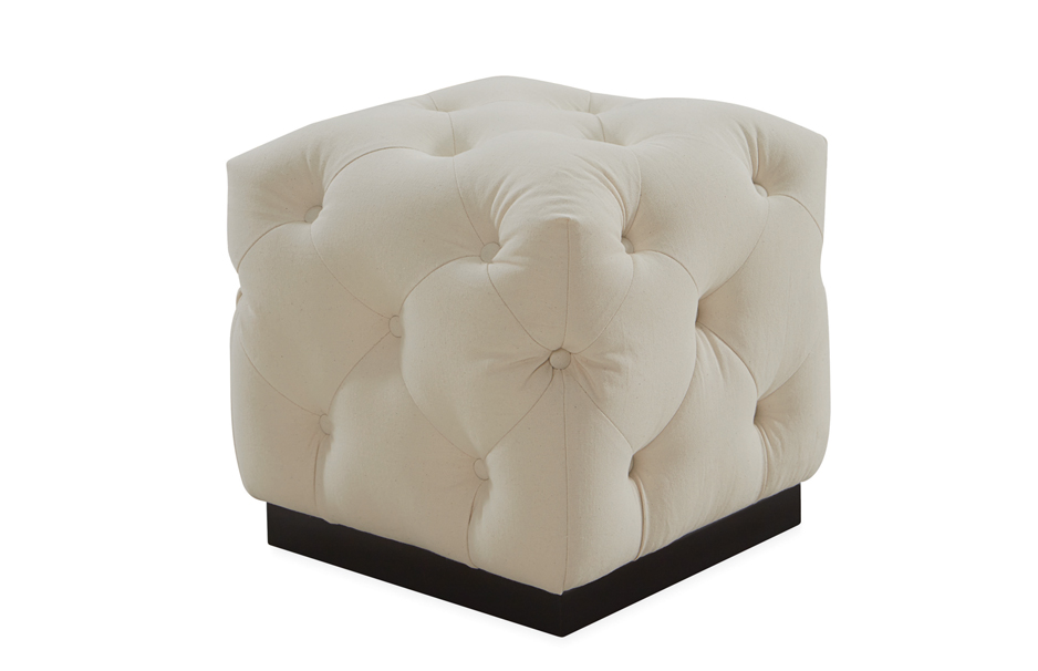 Alternate Views: Ottoman 9579 Item Number: U1-9579-00 Custom upholstered button tufted ottoman from LEE Industries. Wooden base in any Lee Industries finish. Available in fabric or leather. Measurements App. 17"w 17"d 17"h